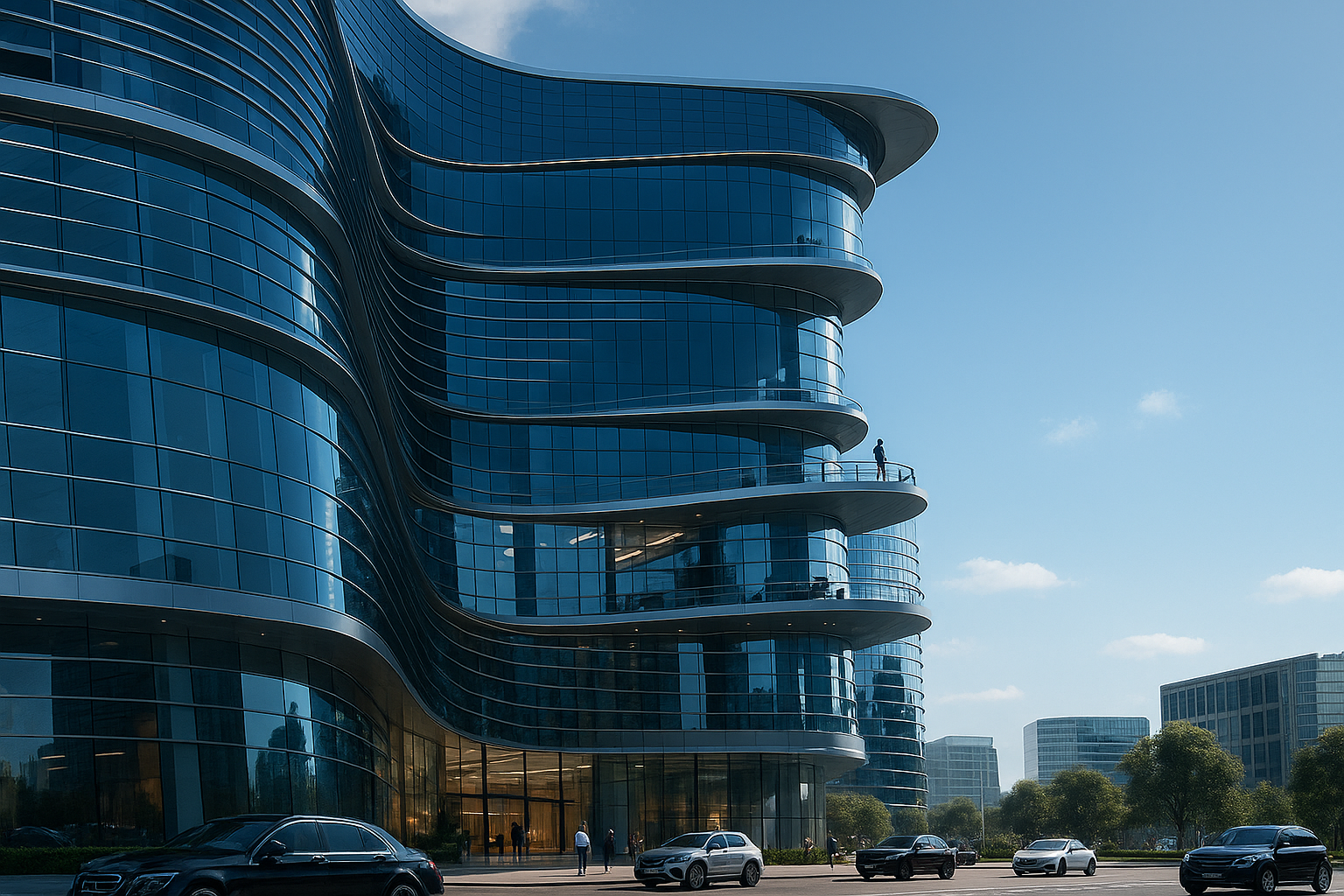 يقوم التصميم على واجهات زجاجية ذات كفاءة عالية في العزل الحراري والصوتي، مثل الزجاج منخفض الانبعاثية (Low-E)، مع اعتبارات دقيقة للظلال الطبيعية وتوزيع فتحات التهوية. ارتفاعات الأدوار الصافية تدعم مرونة تركيب أنظمة HVAC والقنوات، بينما تسمح الواجهات الزاوية برؤية بانورامية تعظّم القيمة التسويقية للواجهات التجارية. وتُدار الحركة عبر مصاعد ركّاب وخدمة وسلالم كهربائية ولوحات إرشادية واضحة، مع فصل مسارات الخدمة الخلفية عن حركة الزوار لتقليل التداخل.