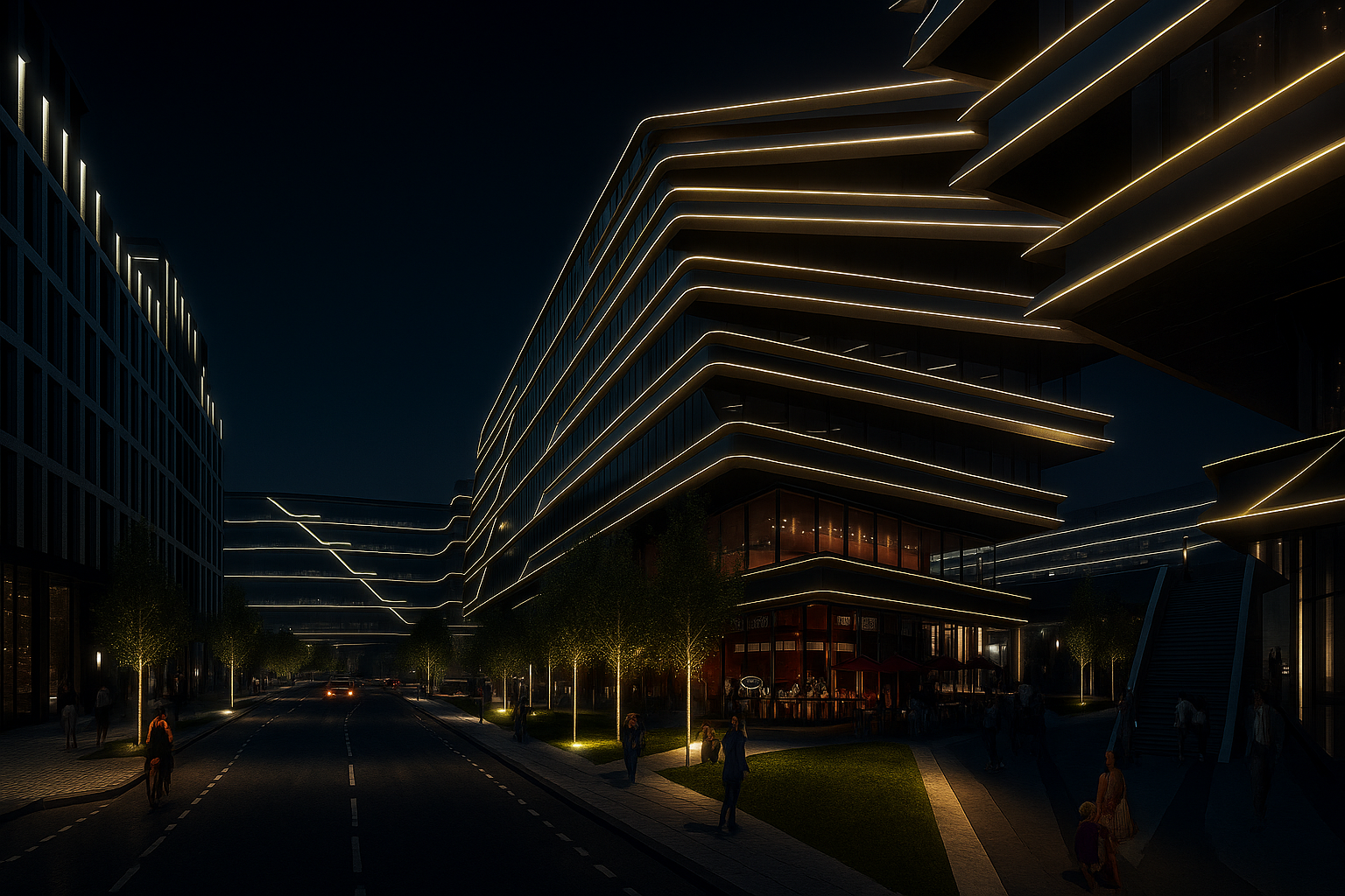• مراقبة وأمن على مدار الساعة مع مداخل ذكية وإدارة دخول.
